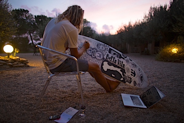Acompañado de los surfistas David Rastovich, Conner y Parker Coffin, Alessandro Ponzanelli, Lauren L. Hill y de la joven estrella italiana Leonardo Fioravanti,